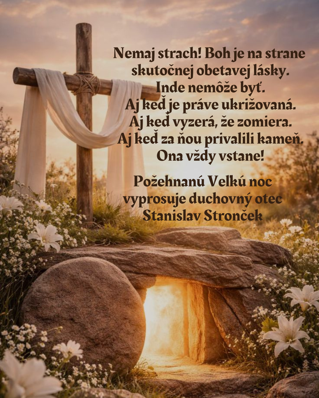 Viem, že hľadáte Ježiša, ktorý bol ukrižovaný. Niet ho tu, lebo vstal, ako povedal.